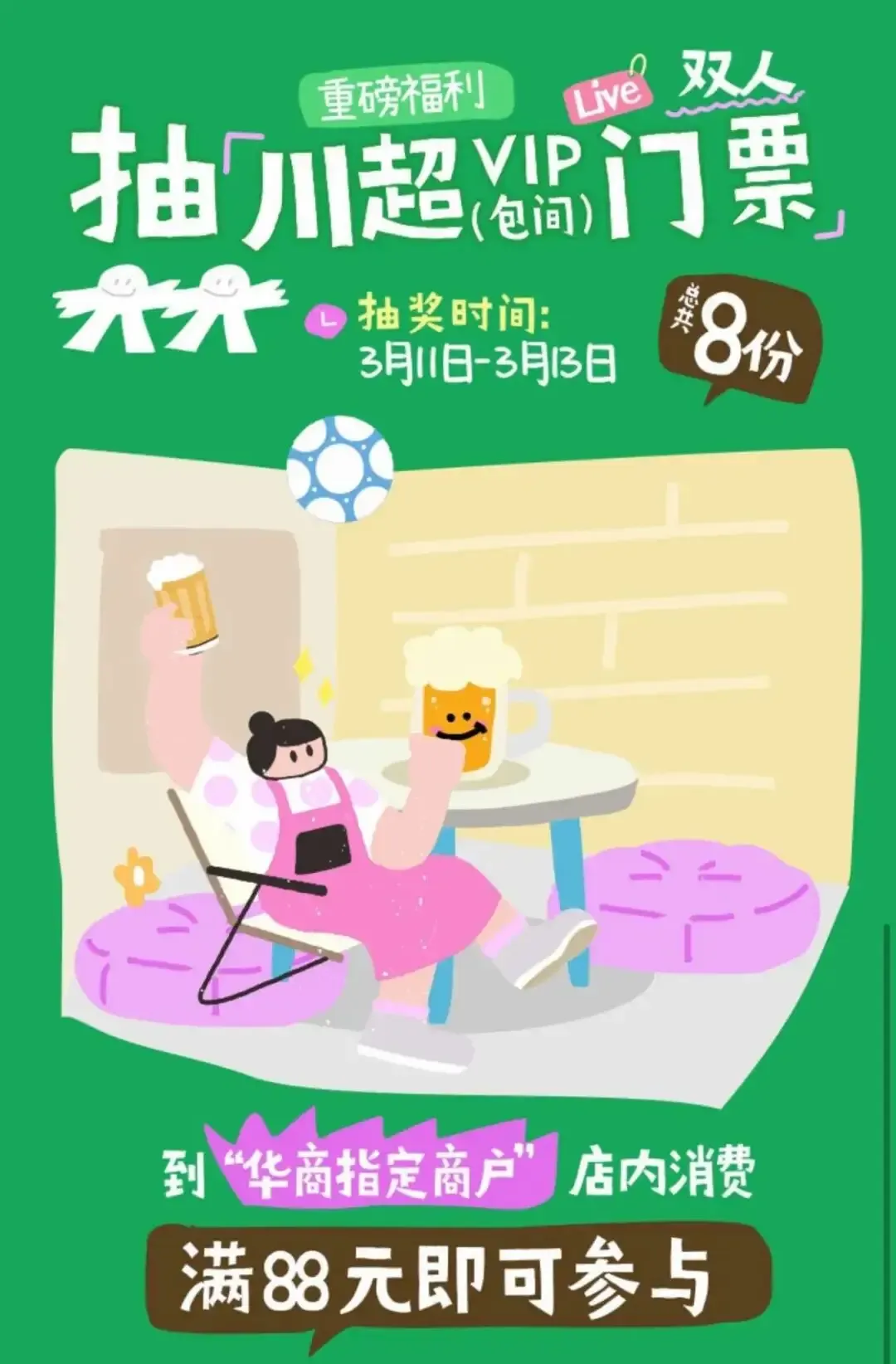 华商指定商家消费满额赠抽奖机会,有机会获取川超观赛票,华商送你去看川超。